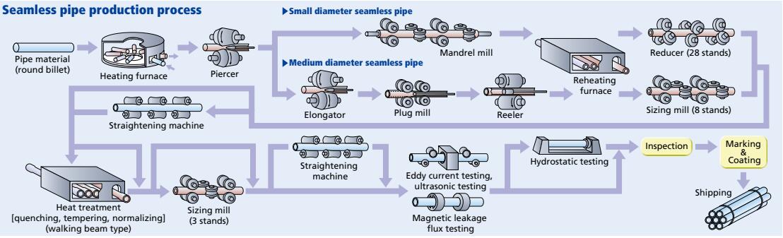 SS Seamless Pipes Manufacturing Process Chart