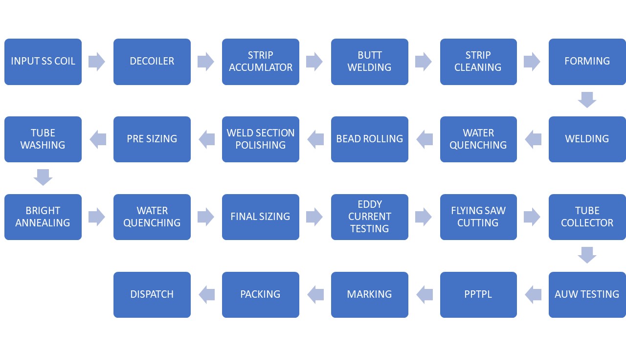 Following these procedures, a specific dimension is obtained. The tubing is now subjected to hydrostatic and eddy current monitoring in order to ensure its accuracy. Hydrostatic inspection determines the metal's strength as well as any pipe leaks, while an Eddy current test identifies surface and subsurface flaws. Finally, the welded pipe and tubes are weighed and measured.